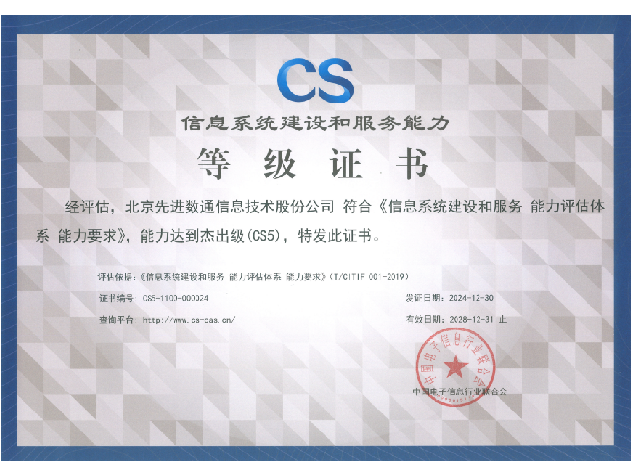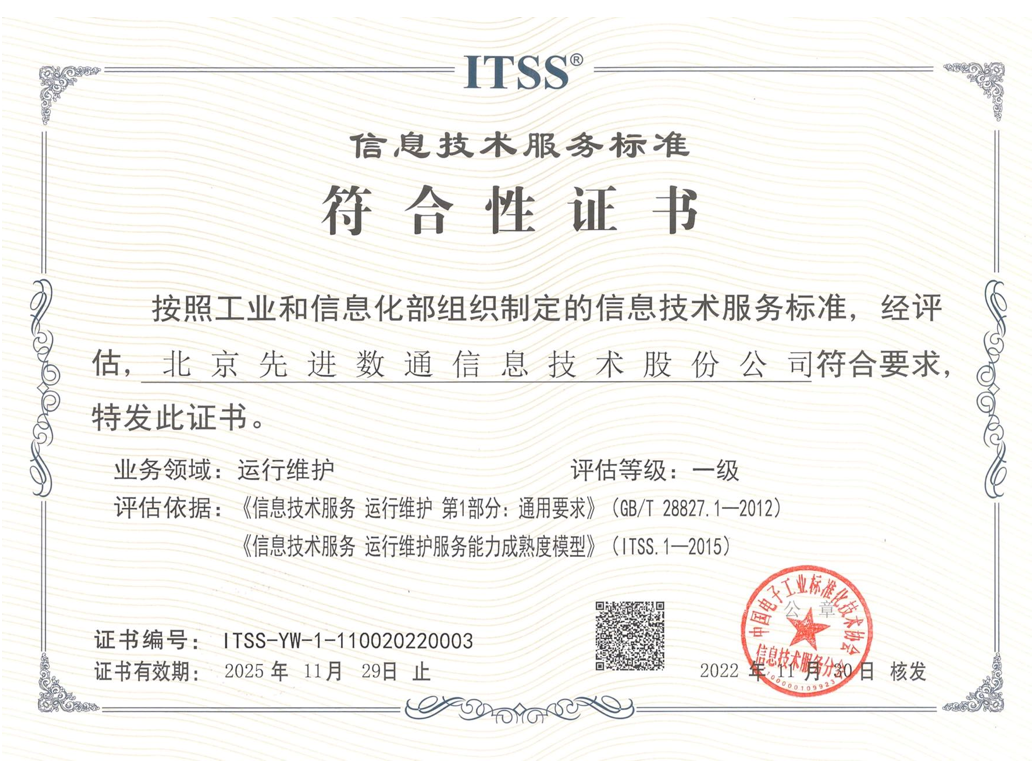 东升国际 东升先后取得CMMIL5、软件能力成熟度五级(SPCA 5)、信息系统建设和服务能力评估体系(CS)5级、ITSS成熟度一级、信息系统安全集成服务资质二级、信息系统安全运维服务资质二级、国产化信息系统集成和服务能力评估四级(LS4)、北京市企业技术中心等资质认证,并取得ISO9001、ISO20000、ISO27001、ISO14001、ISO45001、ISO22301、ISO37001、ISO28001、GBT29490、SA8000等标准体系认证,具备行业领先的技术开发、工程实施及服务保障能力。