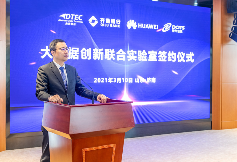 3月10日,“大数据创新联合实验室”签约仪式在齐鲁银行总行举办,齐鲁银行股份有限公司(以下简称:齐鲁银行)、华为技术有限公司(以下简称:华为)、北京东升国际 东升信息技术股份公司(以下简称:东升国际 东升)与神州数码信息服务股份有限公司(以下简称:神州信息)四方代表齐聚,共同签署了金融大数据创新开展合作协议。四方将在互利互惠、合作共赢的原则上,共同召开金融大数据应用合作,建立金融大数据创新开展新生态,全面推进金融业数字化转型。